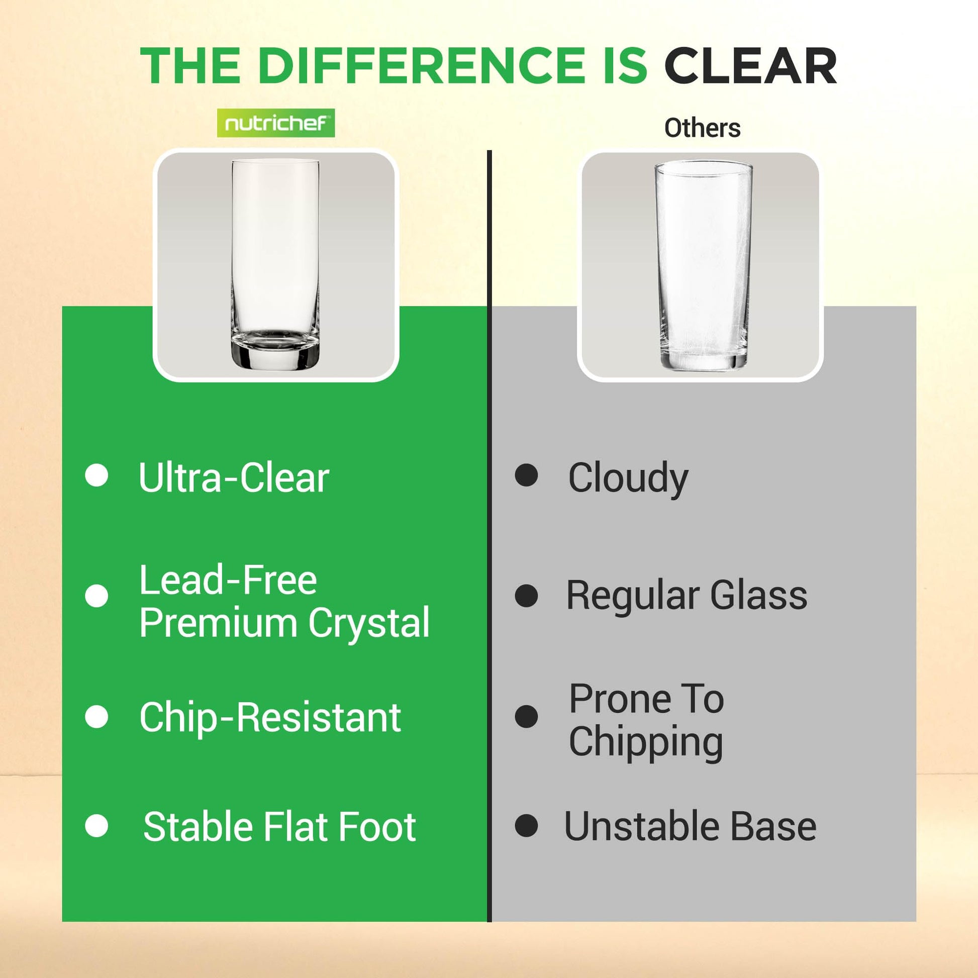 Nutrichef 14.2 oz Highball Drinking Glasses Premium Crystal, Durable & Dishwasher Safe, Elegant Design for Water, Cocktails & Liquor - Set of 2
