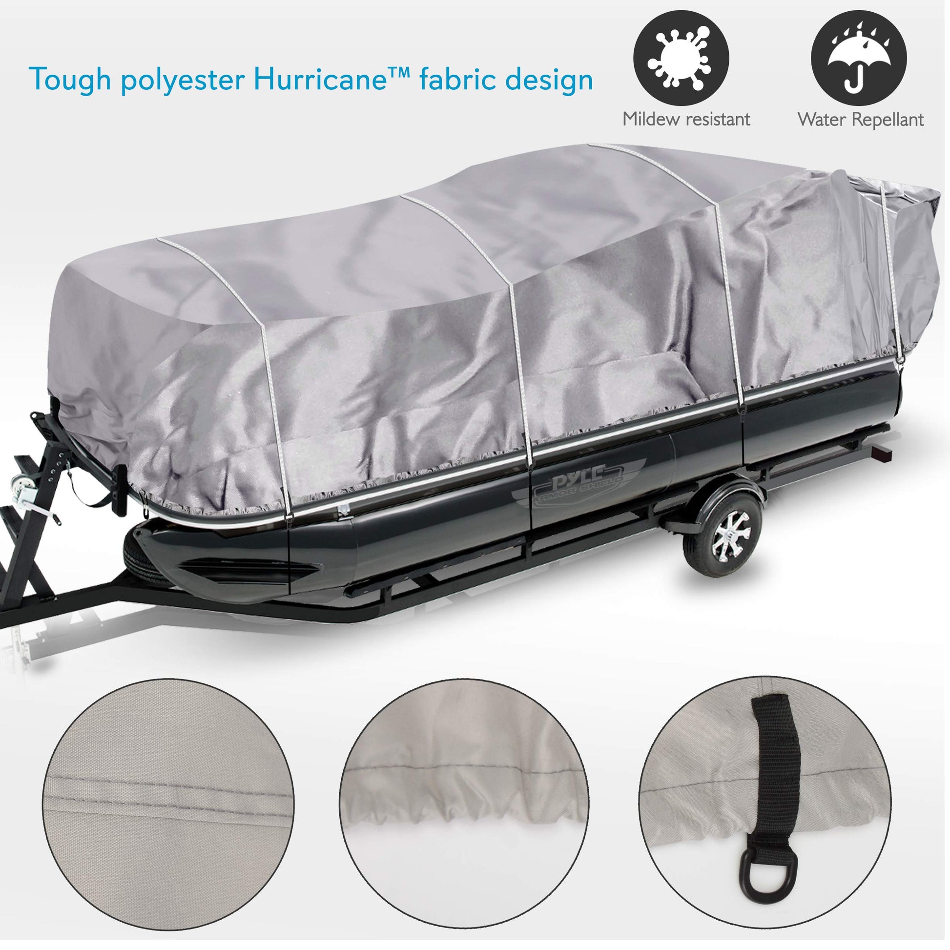 Pyle Universal Boat Adjustable Storage Cover - 17'-20'L to 96” Pontoon Boats Protection Custom Heavy Duty Waterproof Polyester Fabric, Snap Strap, Elastic Cord, Bag