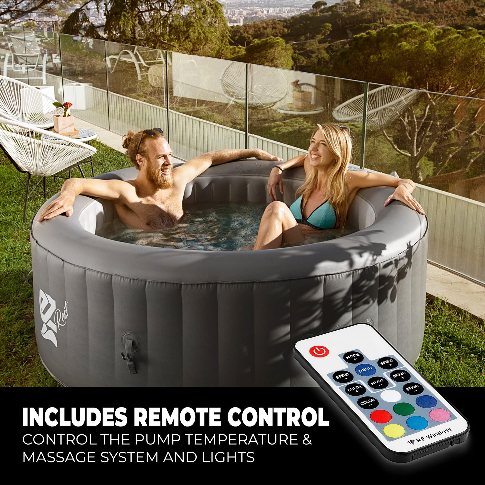 - EASY TO OPERATE: The blow up hot tub is equipped with a digital control panel and comes with a remote control so you can easily adjust the temperature (5°C/41°F to 42°C/107.6°F), air jets massage system, and lights without stepping out of the spa
