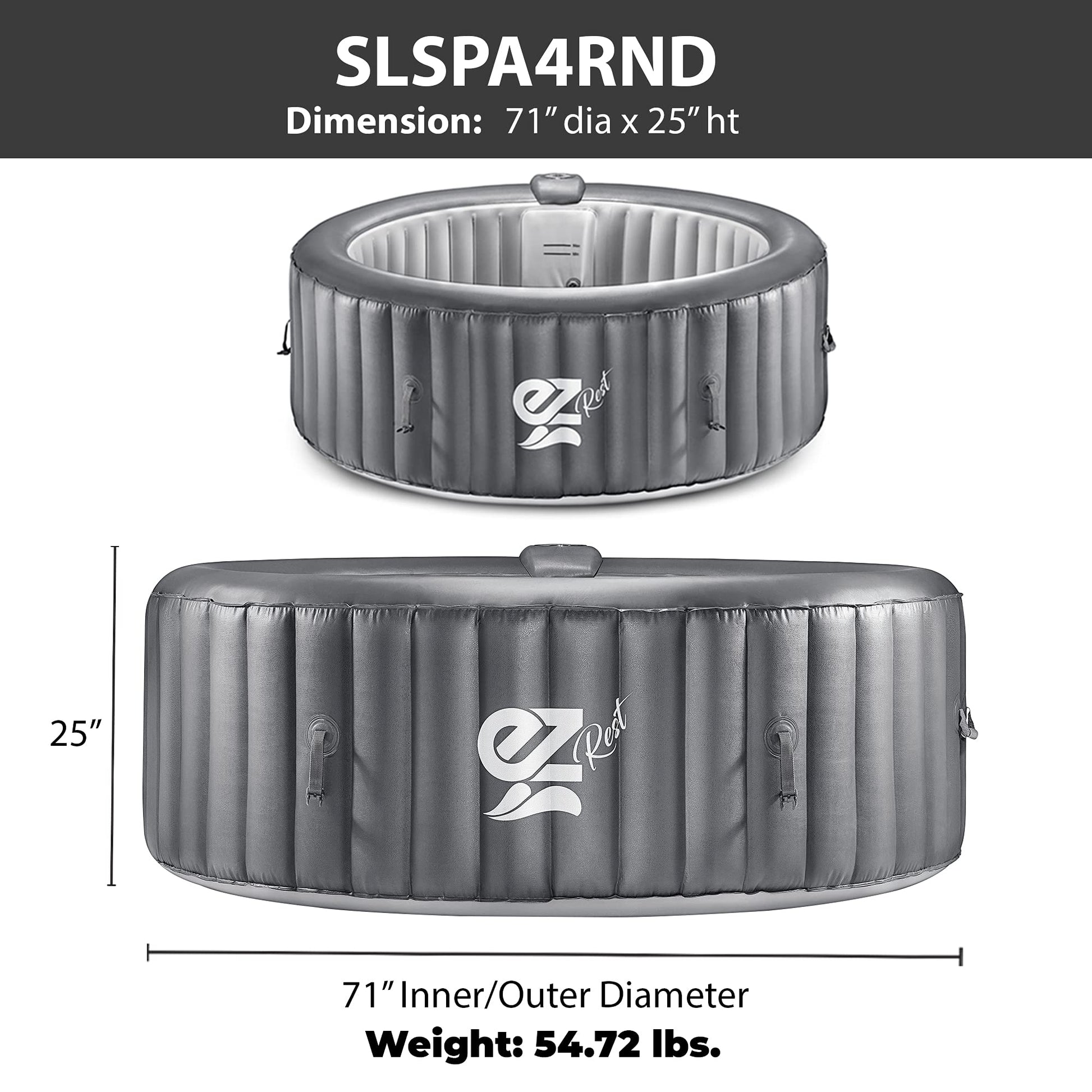 - FITS UP TO 4 PEOPLE: This indoor outdoor inflatable hot tub 4 person measures 71" D x 25'' H and can comfortably fit up to 4 people. Comes complete with, filter, inflatable hose, ground pad, repair kit, remote control, and led light